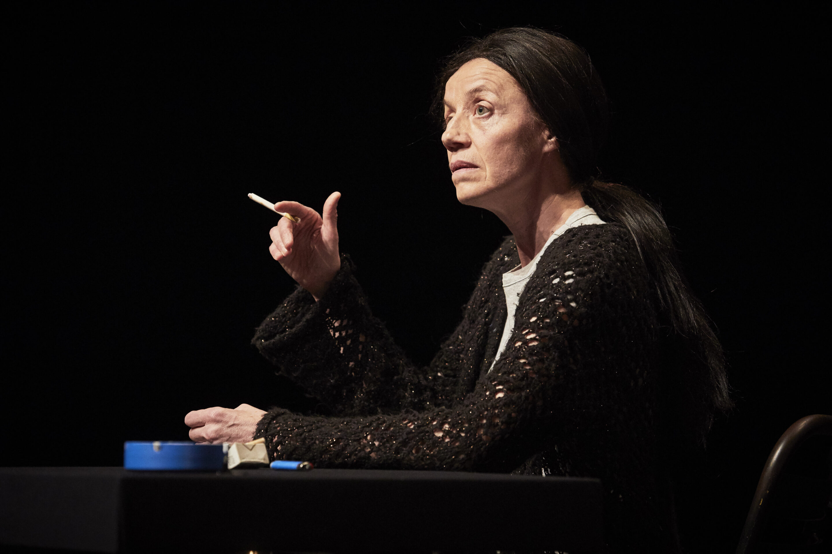 Seule en scène, Catherine Germain tire sur sa cigarette, enfile une perruque de cheveux noirs, s’attable. Elle devient la dame du snack – Latifa Tir. Latifa n’a jamais quitté Marseille. Elle est d’origine Chaouïa : ses parents sont arrivés dans les années 50. Elle a grandi ici, elle tient un snack ici. Et aujourd’hui, elle nous raconte…