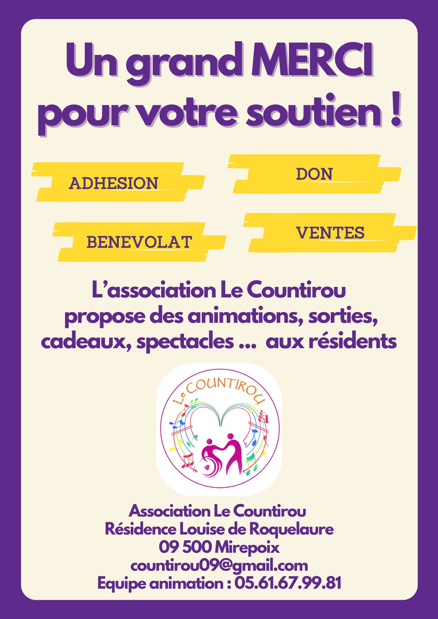 L’association reste ouverte à toutes propositions de dons, partenariats, bénévolat, échanges culturels … afin de proposer de nouveaux projets pour les résidents.