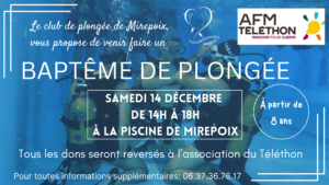 Le club de plongée de Mirepoix (CSAM) propose le samedi 14 décembre des baptêmes de plongée à partir de 8 ans.