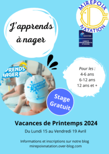 Mirepoix Natation propose un stage gratuit pendant les vacances de printemps pour :