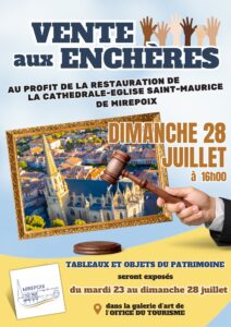 Une belle vente aux enchères d’œuvres offertes par des artistes reconnus se prépare avec pour objet, une aide à la restauration de notre église cathédrale Saint Maurice, ce splendide édifice patrimonial de Mirepoix commencé au Moyen Âge et restauré au fil des siècles depuis plus de 700 ans, devenu propriété de la commune au départ de l’évêque et donc à restaurer avec le budget communal.