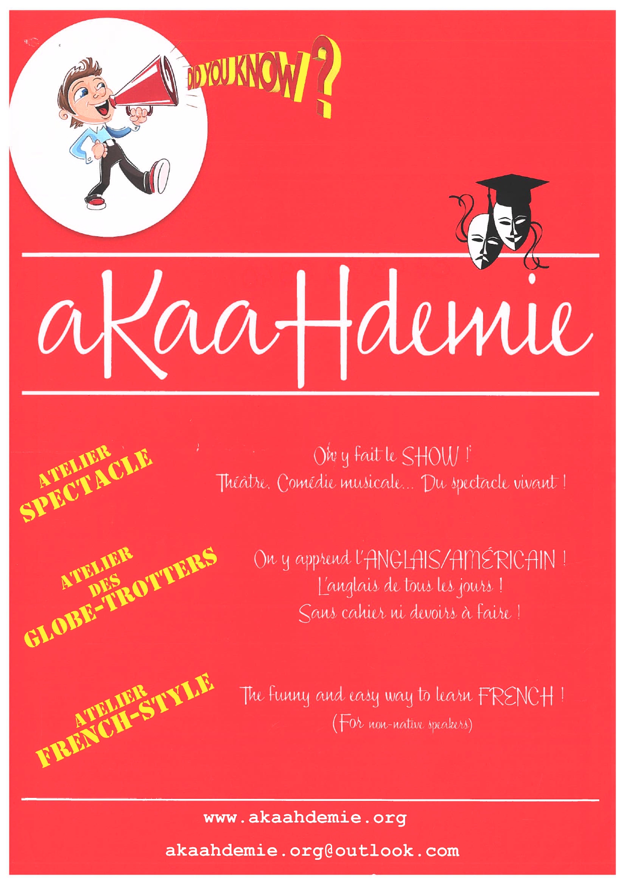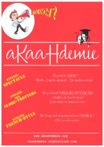 C’est une association où on retrouve des cours de théâtre, des cours d’anglais/américain et des ateliers spectacles.